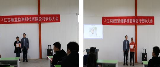 紧接着是由江苏雁蓝检测科技有限公司副总经理蔡总为大家宣读获奖人员的名单,表扬获奖同事并鼓励大家再接再厉。