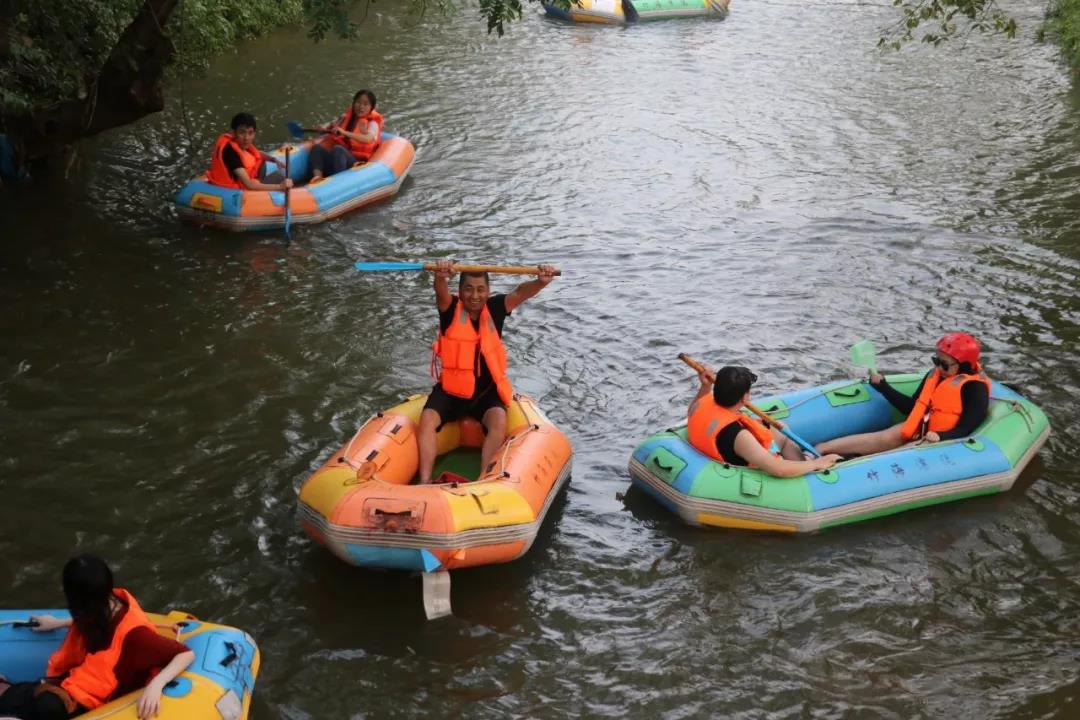 下午全体员工领好安全帽和救生衣,拿好船桨开始了竹海漂流活动,在时而湍急时而平缓的水流中漂流艇顺流而下,同事们打起水战,在惊险刺激的漂流中品味着江南小村庄的韵味,感受到了更多的刺激和欢乐。